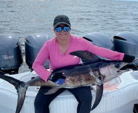 High speed retrieves get bit most often by kingfish-they don’t get as good a look at the fleeing ‘baitfish”, your Diamond jig. The Shimano TSM IV Speedmaster and it’s 6.0:1 retrieve ratio fills the bill. Its 44 inches of line retrieved per turn of the handle with a full spool, gives you speed to burn. The Speed master’s capacity of 330 yards of 30# mono is adequate, but I prefer about 120 yards of 40# mono under 300 yards of 100# Power Pro Spectra. The Spectra is the size of 20# mono and has almost zero stretch, which aids in the hookset. It’s a bit pricey at about $38 for 300 yards but its many advantages, including lasting almost forever, make it worth the price to me. Hi-Vis yellow or white is my color preference; with it, you, and everyone else can monitor your line’s location in the water. My Spectra has about 15 feet of 60#, clear Izorline mono leader; they are connected with a “Tony Pena” knot that was fully described in the last issue. It’s also the knot used to mate the mono backing to the Spectra. You can delete the type of mono leader that I use by tying a 10-turn surgeon’s loop into the Spectra, use a 10-turn offshore swivel knot to attach your swivel, then twist on your wire leader. The first 15 to 20 feet of the bright Spectra can be easily made difficult to see by any predator chasing your jig - take a green Marks-A-Lot permanent marker, carefully split the tip lengthwise, then run the Spectra through it. Now, it’s as stealthy as the wire on the Diamond jig. Rods I use for casting these 4 to oz. Diamond jigs are All Star Graphite WCS 1701W, 7’, rated for 15 to line. . .castability, power, and quick recovery. I set my drag at 12 to with this reel, line, and rod combination.