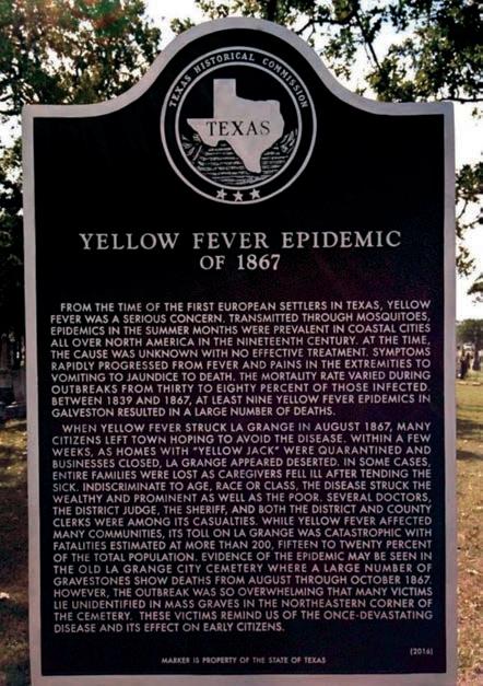 n 1844, yellow fever struck Texas with a vengeance and took onethird of the population of Galveston.