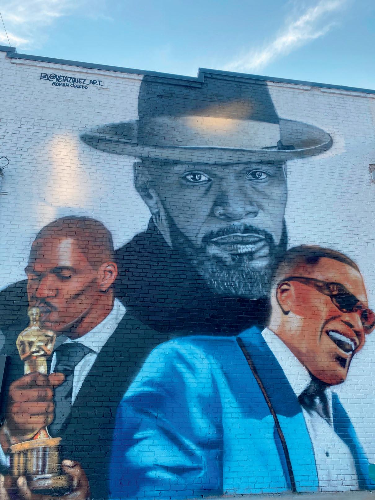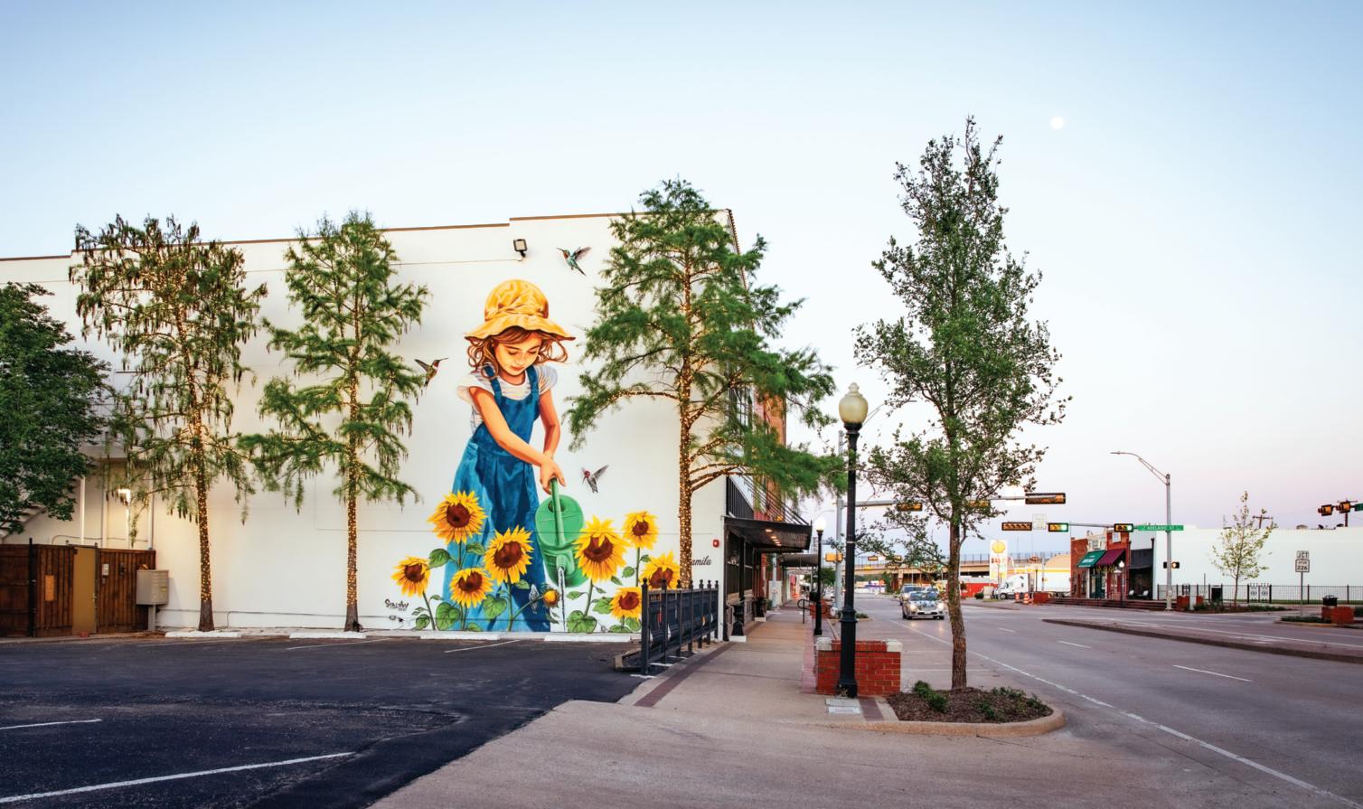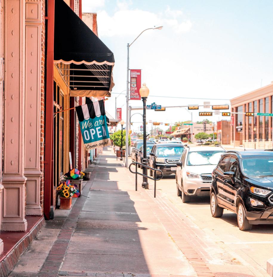 books to upscale consignment boutiques. You can even catch a vintage movie while sitting in the original theater seats. The district also features a series of hand-painted murals that capture Terrell’s rich history—depicting scenes like classic movie posters, a vintage biplane, an antique 1899 automobile, historic fi re engines, the Texas fl ag, and a nostalgic circus arrival.