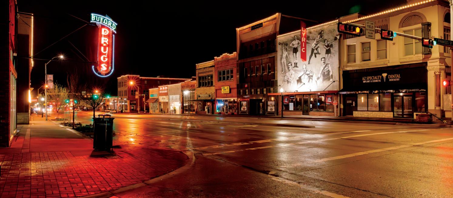 As you stroll from one shop to the next, be sure to admire the historic buildings and murals, mapped out along the Wayfinding Kiosks throughout downtown.