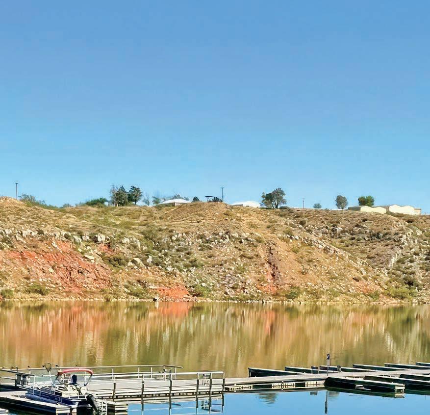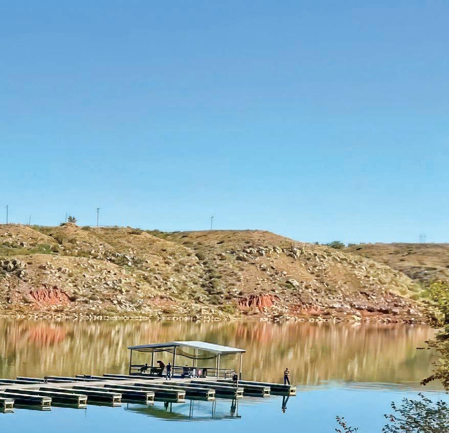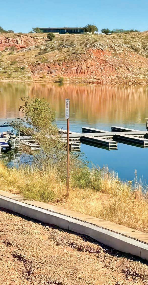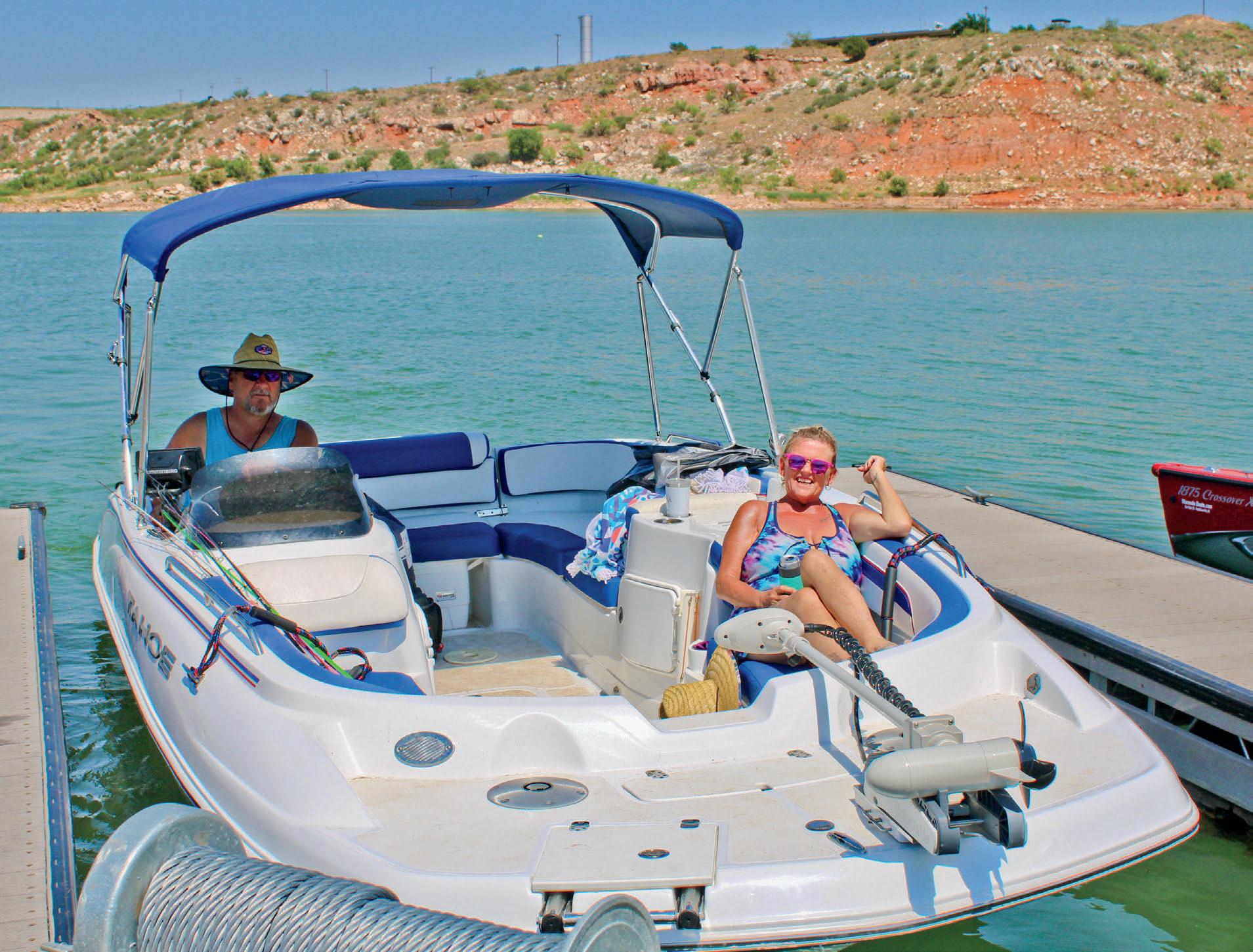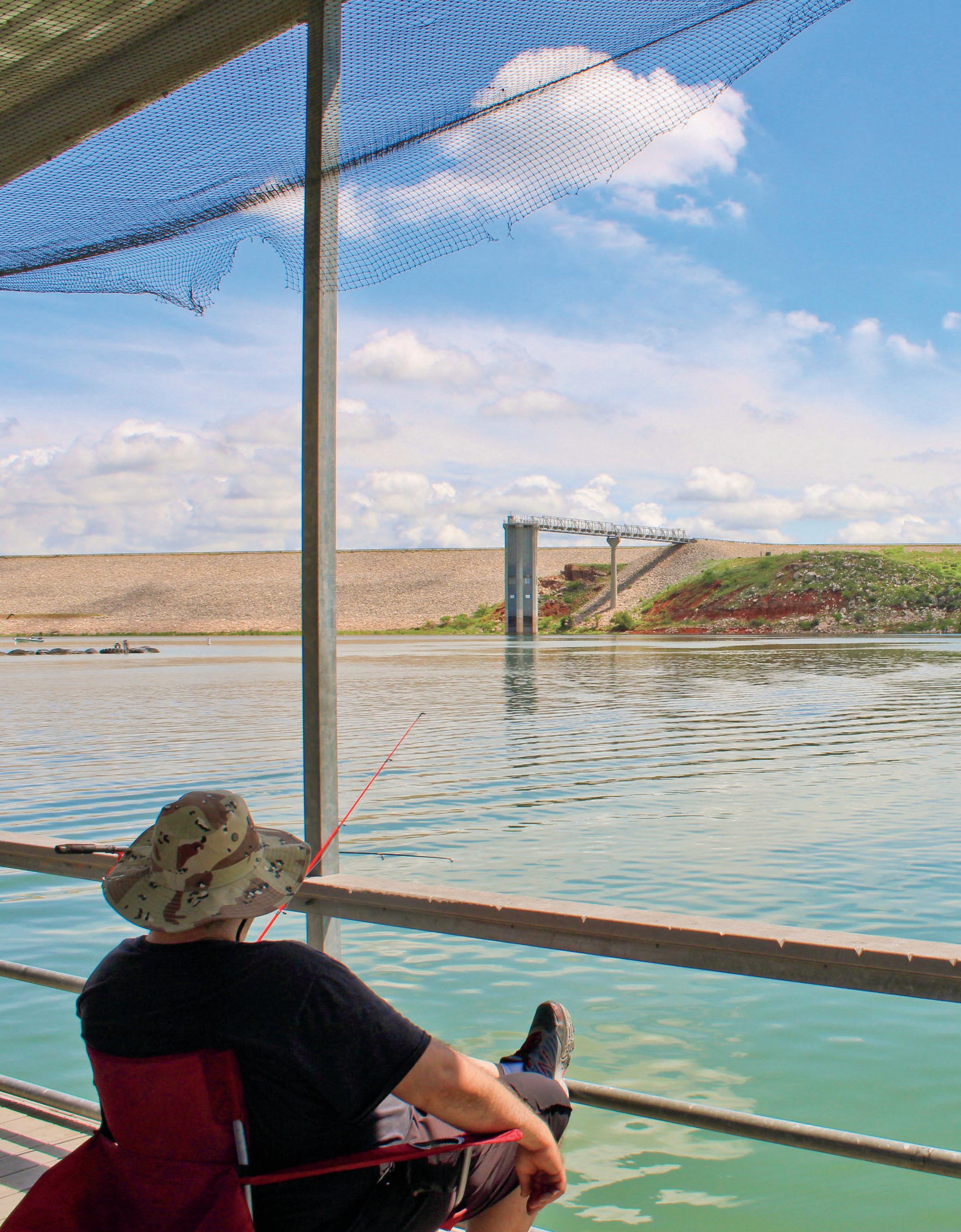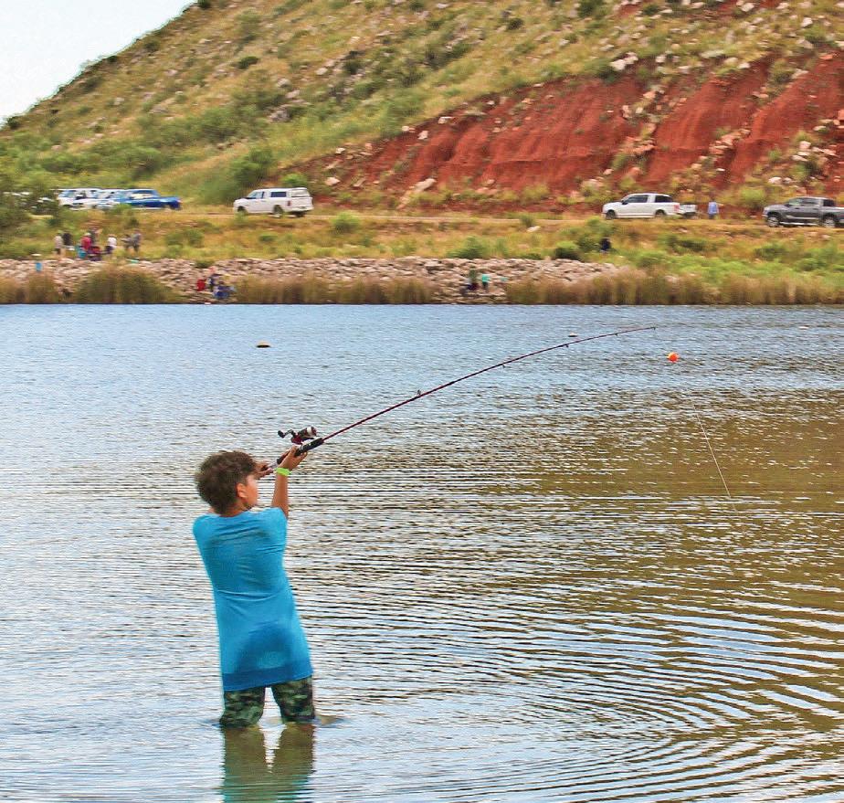 Page 3 Photo: Whether from a boat, the shoreline, or the covered dock at Sanford Yake, Lake Meredith offers prime fishing spots for anglers of all kinds. Sit back, cast a line, and soak in a perfect day by the water. (Photo