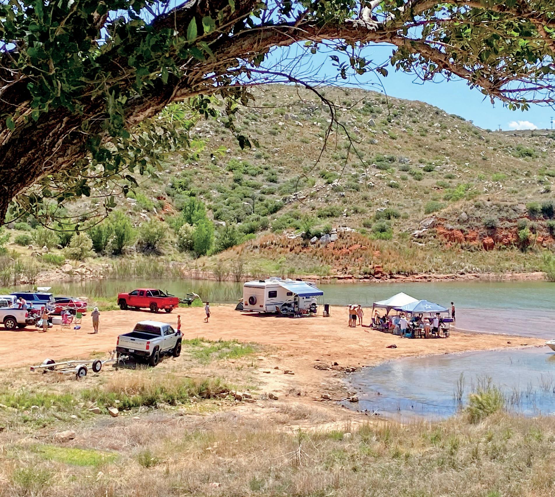 Lake Meredith is a camper’s dream, offering a variety of scenic spots perfect for pitching a tent or parking an RV.