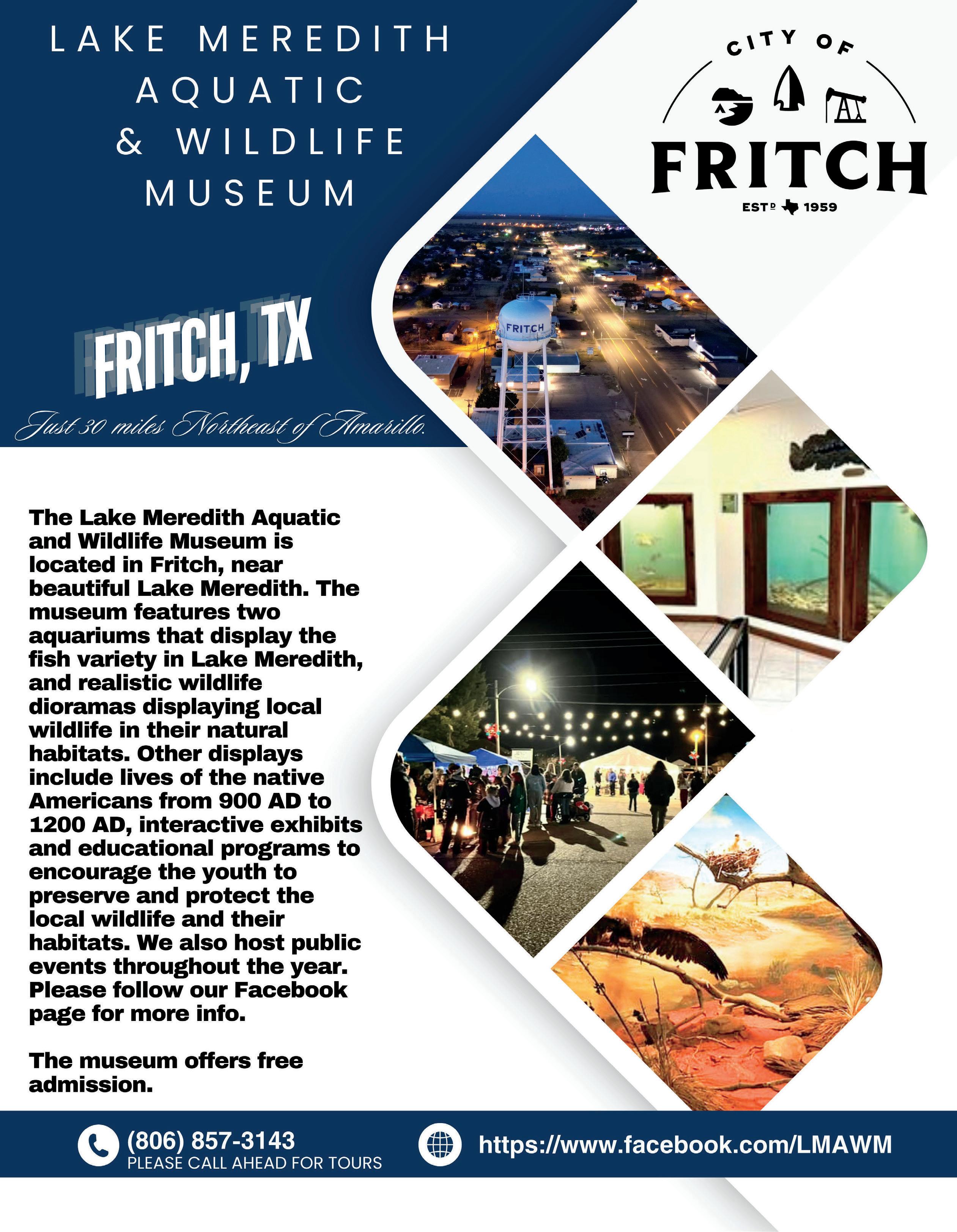 Discover Nature Up Close at Lake Meredith Aquatic & Wildlife Museum. For a fun and educational detour, head into the heart of Fritch and explore the Lake Meredith Aquatic & Wildlife Museum, a hidden gem for nature lovers and curious minds alike. This family-friendly museum celebrates the rich biodiversity of the High Plains region with a range of engaging exhibits.