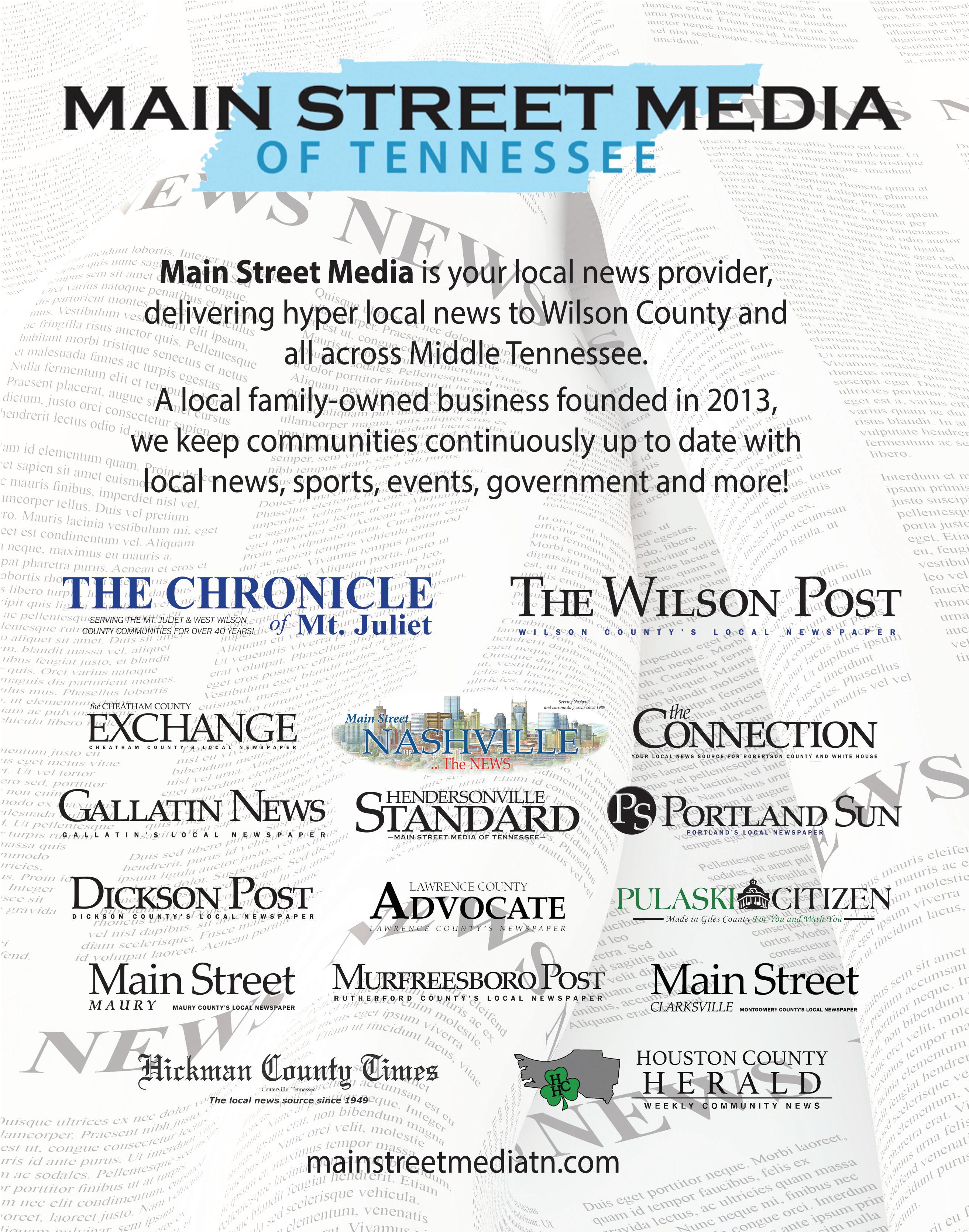 The 2024 Main Streets of Mt. Juliet magazine published for the Mt. Juliet Chamber of Commerce received a second-place award in the Best Special Section category of the annual Tennessee Press Association statewide media contest last June. The section, which highlighted “hometown teachers” in Wilson County Schools, was published in the Chronicle of Mt. Juliet. The comments from the contest judges were, “The design is simple but impactful. Very graphically pleasing. Concise, clear