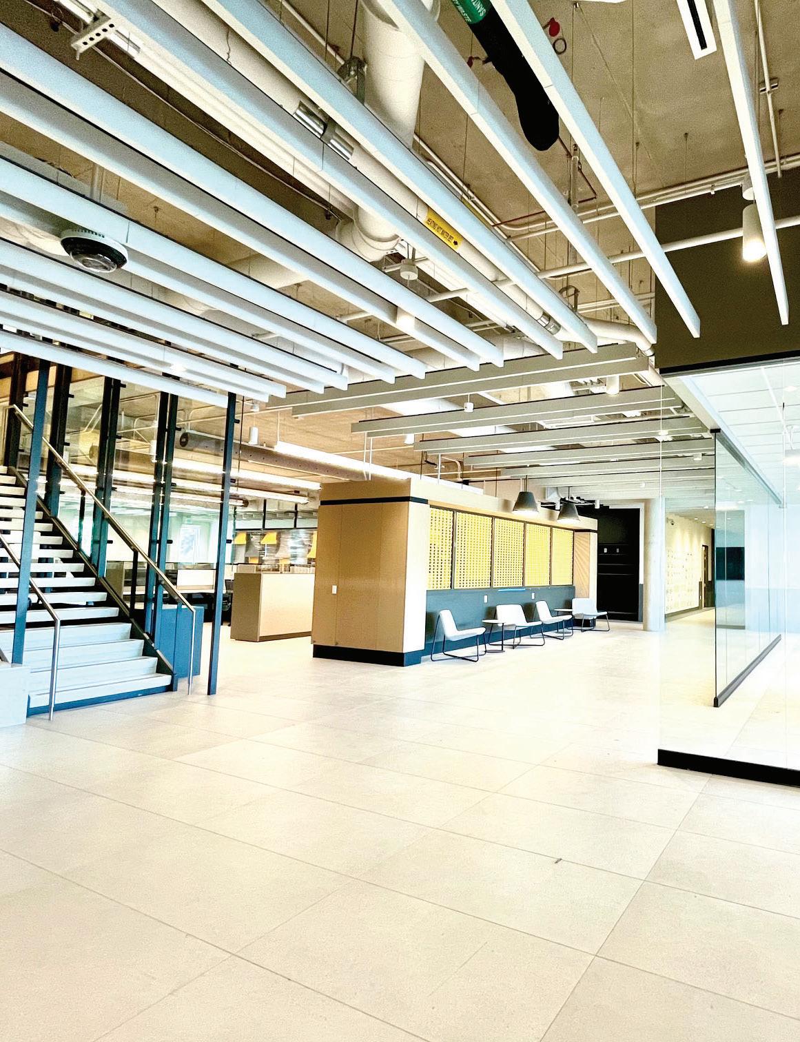 The lobby is airy and bright.