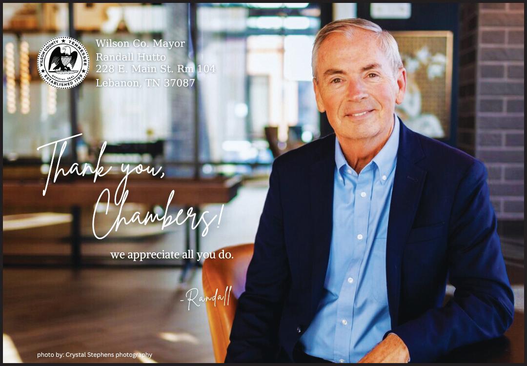 On behalf of the Staff, Volunteers and hundreds of Member Businesses, I would like to personally thank you for your continued support of your Community, our Main Street Magazine, and the Mt Juliet Chamber of Commerce. Together we work to promote our message and the many wonderful things we have to share with our friends, neighbors, and visitors.