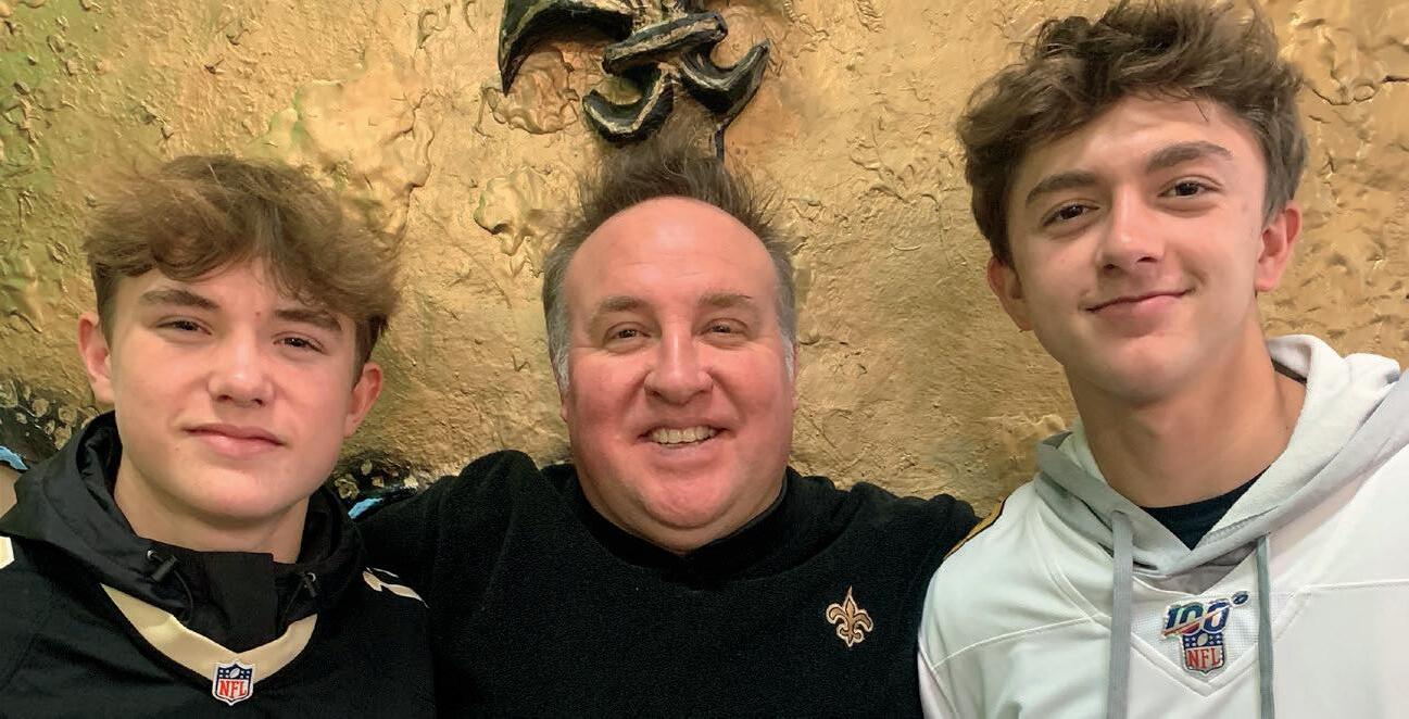 12. Gregory Ruiz II, Gregory Ruiz Jr., and Ryder Planchard, all natives of St. Bernard, celebrate after a big Saints win against the Los Angeles Rams last year.