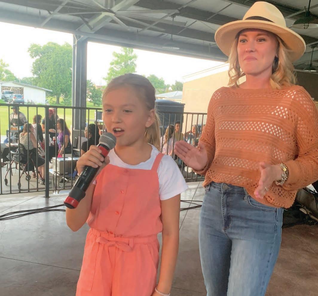 Emma Jo performs “Speak Now” with mom Lindsey and Cypress Pop Trio at Sippin in the Sunset, sponsored by the Old Arabi Neighborhood Association at Aycock Barn.