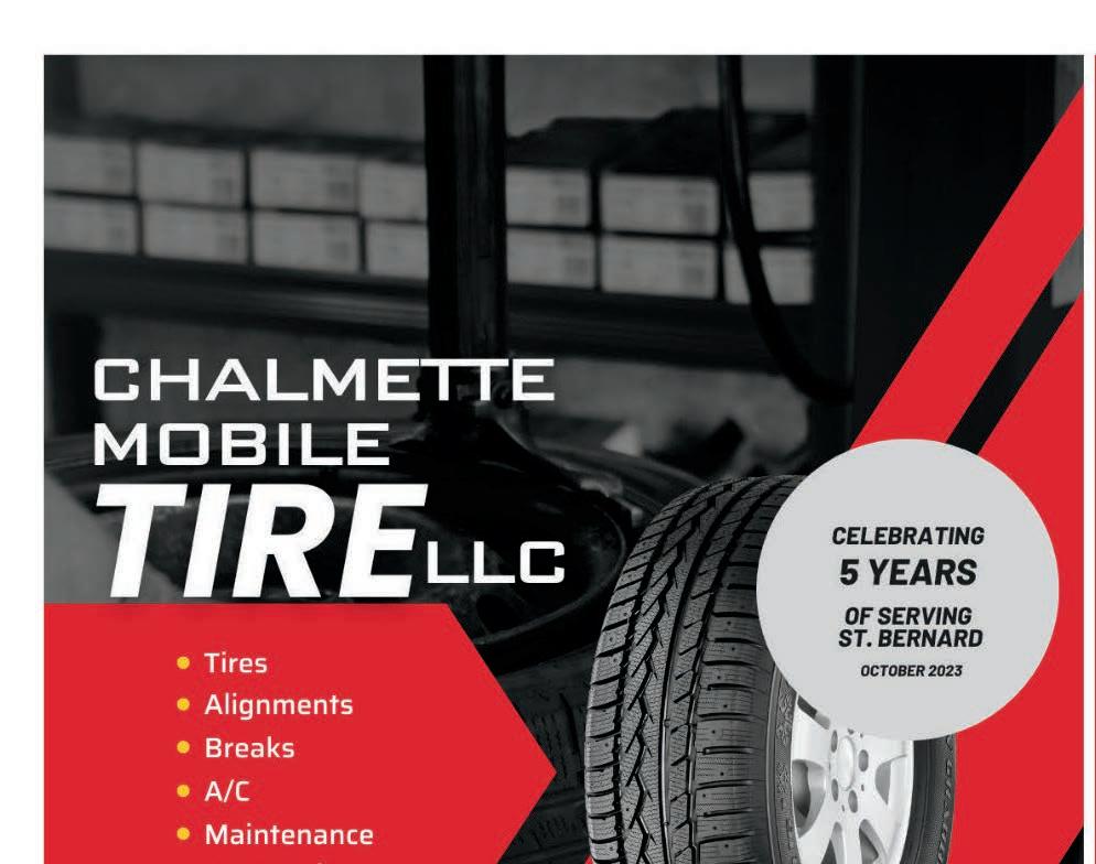 Phone: (504) 345-2780 Dine-in • Drive-through No delivery 3124 E Judge Perez Dr Meraux, LA 70075 Hours: 4:30 AM-2 PM NOW OPEN BrightStar_qtrpg9-23.pdf 1 8/7/23 6:06 PM Stbernardmagazine@yahoo.com Stbernardmagazine.com/subscriptions P.O. Box 57801, New Orleans, LA, 70157 MAGAZINE In Your Mailbox $25 A YEAR (4 ISSUES) CALL CHARLES JACKSON 504-609-7509 Because It Matters! Because It Matters! Gerald’sBurgers & DonutsGerald’sBurgers & Donuts CHALMETTE 2101 E. Judge Perez Drive (504) 252-9498 ARABI 6901 St. Claude Avenue (504) 277-0030 KENNER 2560 Williams Blvd. (504) 468-8226 Owner, Richie Lewis Owner, Richie Lewis