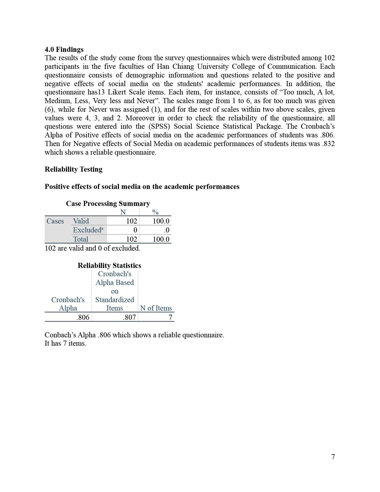 Effects of Social Media | Research Methodology Report