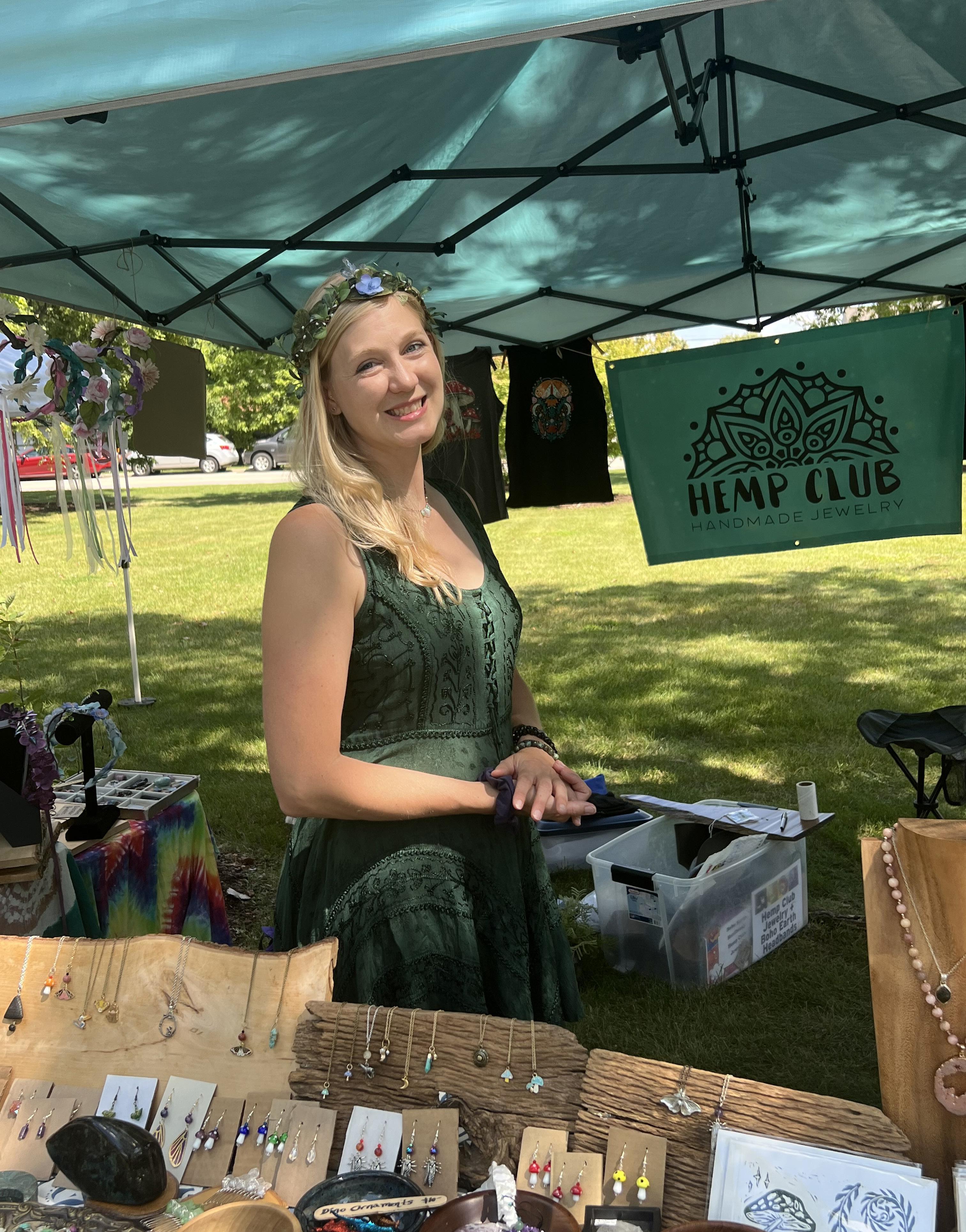 Over the last 12 years of art pop-ups, festivals, and markets, I’ve connected with a wonderful circle of local artists, small business owners, and makers who inspire me daily. I’m proud to share my craft with aspiring artists of all ages, offering free demos and lessons at my booth whenever possible. Part of my goal with Hemp Club is to pass on the joy and fulfillment of making jewelry to others, just as Julie did for me. I’ve also provided space for budding artist friends to sell their work at my booth, helping them taste vending at shows without committing to a full booth alone.