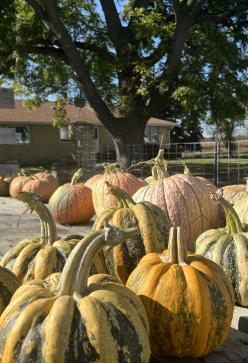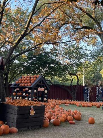 Autumn at Sonny Acres: pumpkins on parade beneath an amber canopy, waiting for the perfect pick.”