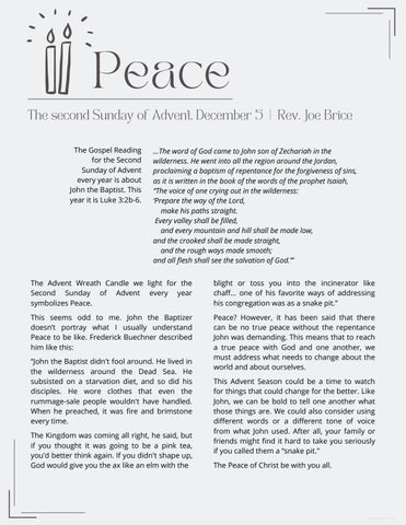 Peace? However, it has been said that there can be no true peace without the repentance John was demanding. This means that to reach a true peace with God and one another, we must address what needs to change about the world and about ourselves.