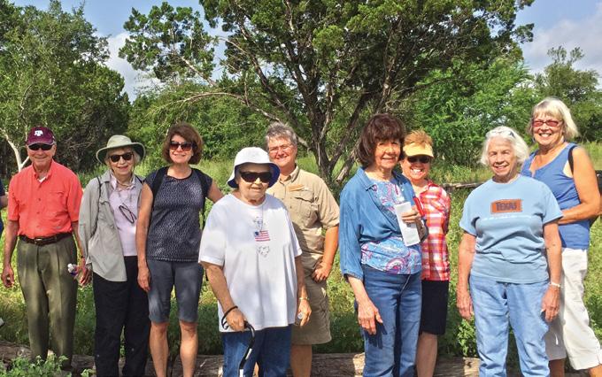 Monday, July 6, was a beautiful summer morning for our first Hardberger Park Walk. We were greeted by Susan Campbell, Education Coordinator and tour guide in the Urban Ecology Center classroom, who showed photos and gave a trails map presentation before starting on the walk. To sum up the day, let me quote Lynn Thompson “… The boardwalk tour of all the eco-friendly architecture was informative and beautiful. And then, our guided walks around the butterfly garden, savannah, and trails through the trees learning about what’s edible or not made our day so fun. Our picnic under the trees on the cool stone tables made for a perfect end.” We plan to take another tour in the fall when the Voelcker Homestead is opened to the public. Be sure to watch for more information!