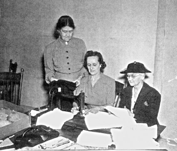 The WWII years created many opportunities for First Pres women to serve. The basement of First Pres became a hubbub of activity during the war years. The Women’s Auxiliary sponsored a variety of projects such as preparing care packages for soldiers, writing letters to servicemen, First Aid classes, knitting and sewing classes and bandage-rolling classes to name a few. Women of First Pres hosted a coffee hour on Tuesday mornings for army wives which included Bible study followed by a social hour. Informal gatherings for servicemen were scheduled every Sunday afternoon from 4 to 7 which included afternoon fellowship, a light supper and a brief vesper service. Later in the war, the session gave permission for soldiers to use the gym for games prior to the 4 o’clock gatherings.