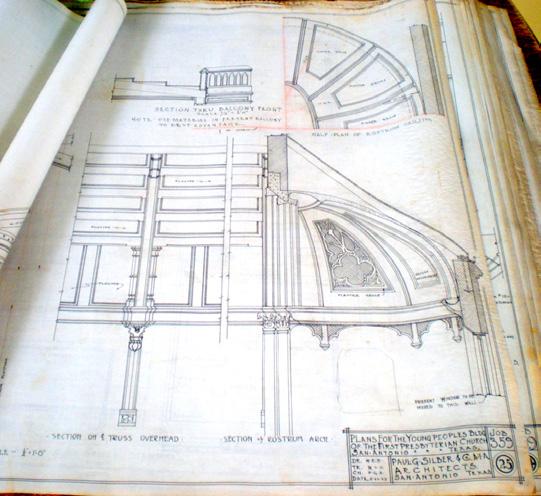 information about his family, but also offered to donate his father’s original 1923 architectural plans which were drawn in ink on linen. At that time, the church’s archives were in storage awaiting completion of the new archival space. During the intervening time, Paul Silber, Jr. passed away.