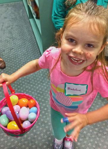 It was a fun morning filled with worship, Bible story time and lots and lots of Easter Eggs. Kids learned that JEsus rode into Jerusalem on a donkey while people waved pAlm branches while praising him and less than a week later he was crucified on a crosS and then buried in a Tomb. Three days later the tomb was empty and Jesus was alivE, which means that we are all foRgiven! By the end of the story, the kids had spelled out the word EASTER and the celebration continued as we worshiped together in song.