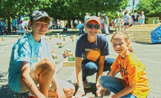 unday, April 30, 2017 was a wonderful day in the missions department as FPC partnered with Habitat for Humanity for their 6th annual Project 240. Hundreds of members and visitors gathered in the FPC parking lot to hammer nails and join in fellowship, as the frames for five homes were built in 240 minutes. Children were able to participate as they helped to pass out snacks and refreshments, and decorate crosses that will be given to the families who will live in these homes. KLOVE-FM, came out to provide music for the entire afternoon as well.