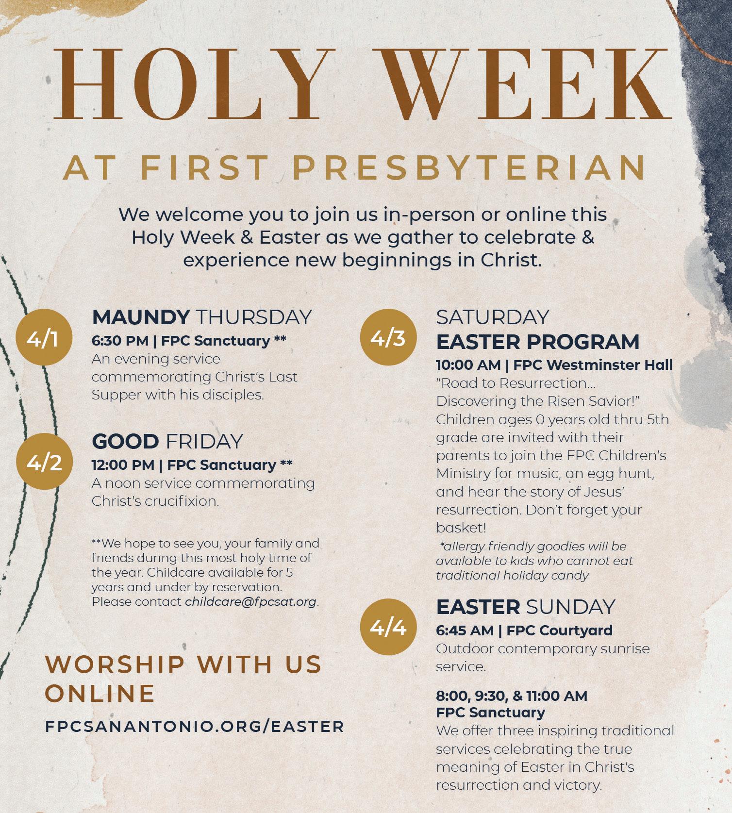 Location: Westminster Hall; Online at fpcsanantonio.org/media