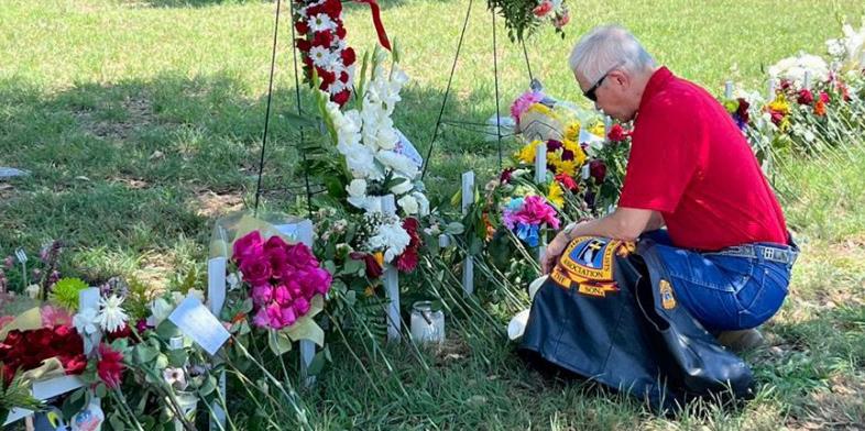 On May 28 (235th anniversary of the death of Leopold Mozart, the father of Wolfgang Amadeus) I joined a group of Christian Motorcyclists to comfort and support the people and volunteers in Uvalde. I drove instead of riding for I had to carry bottled water. I stopped in Castroville to get goodies from a French bakery. In Hondo, I smiled at the sign “This is God’s Country. Don’t drive through it like hell.” Then I began to choke up when seeing portraits of recent high school graduates lining Route 90