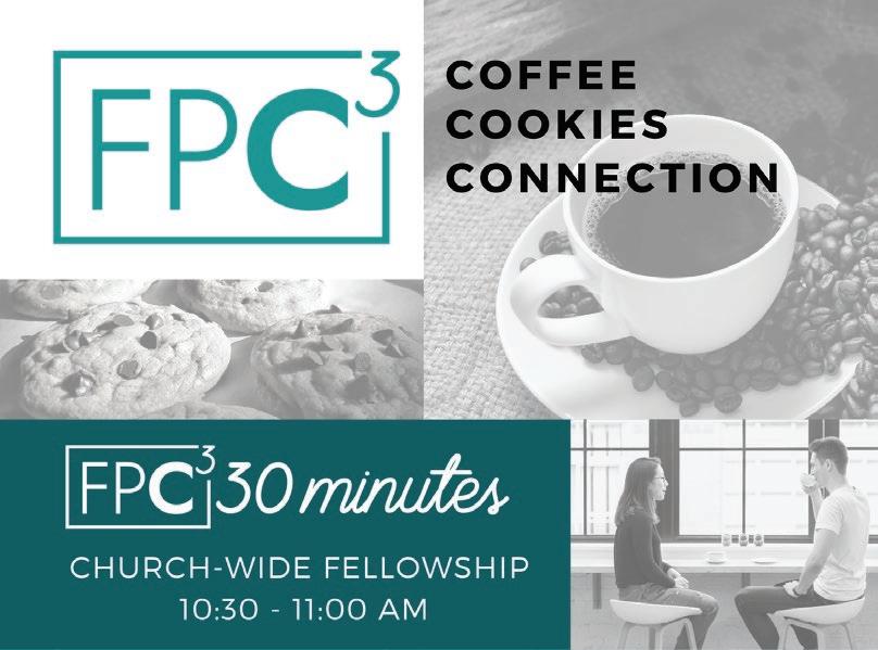 FPC3 (Coffee, Cookies, & Connection) will be set up in the McCullough Room from 9:15 AM - 12:00 PM on Sunday mornings. Be sure to stop by during FPC3 30 Minutes, a special half-hour specifically set apart at 10:30 AM, for the FPC family to spend together.