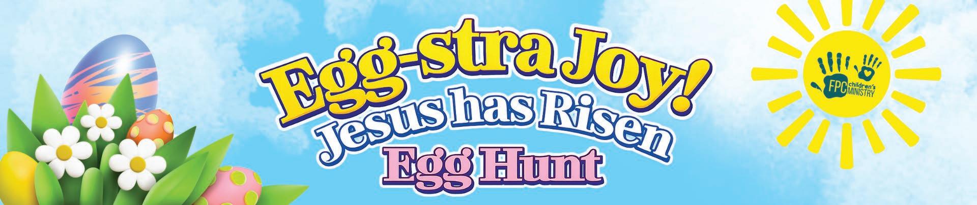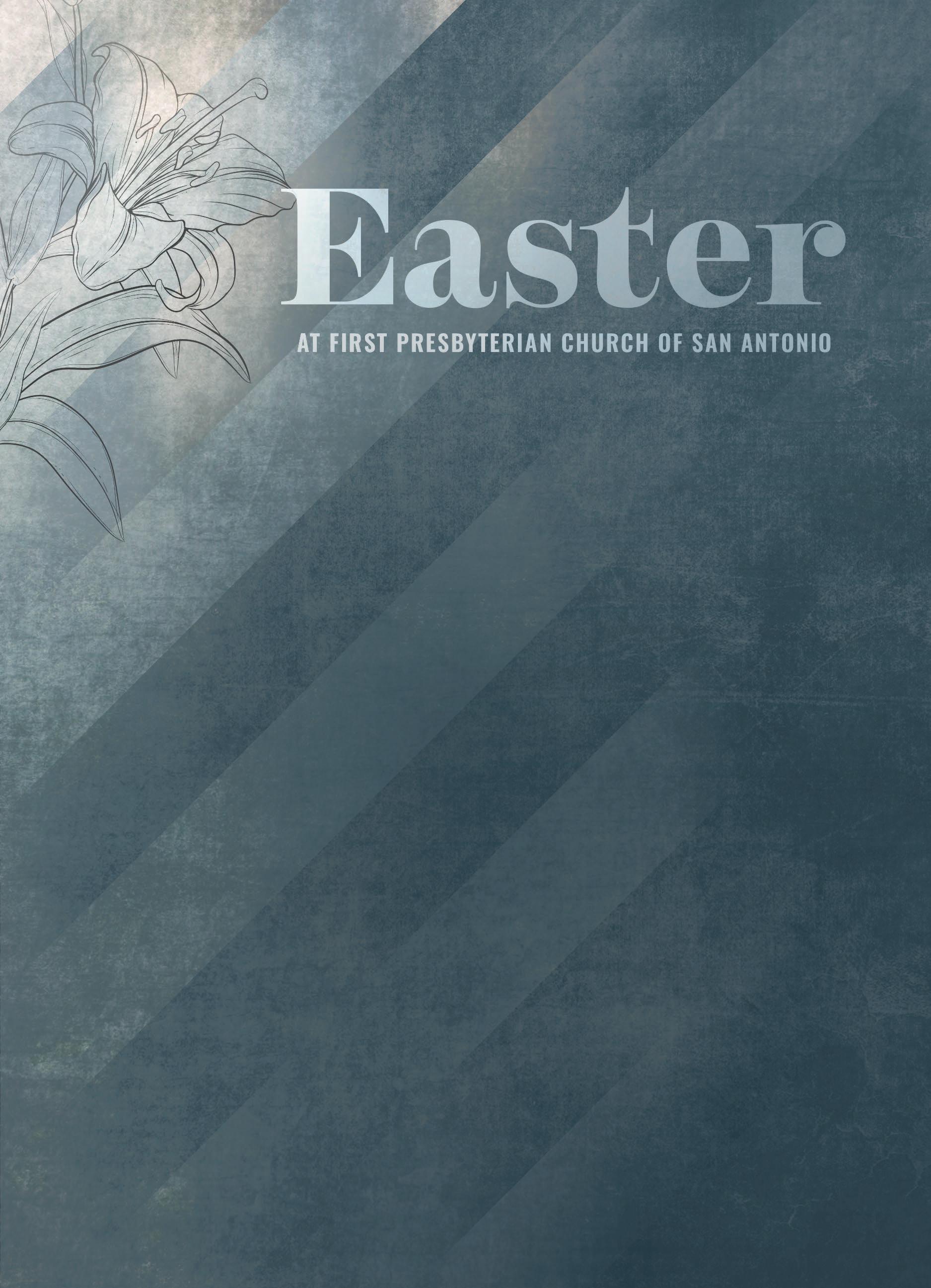 CHILDREN'S EASTER PROGRAM & EGG HUNT: 10:00–11:00 AM, Westminster Hall. All children (infants through 5th grade) and their families are invited to a joyful Easter program and egg hunt. Bring a basket and invite a friend! Contact: Rebecca Sweet, rebeccas@fpcsat.org