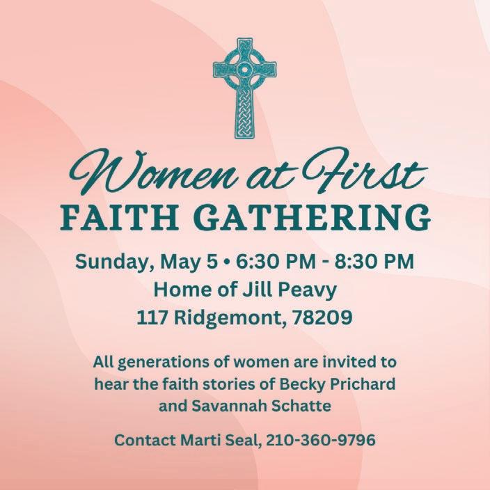 Location: First Baptist Church, 515 McCullough Ave. Contact: Lindsay Selli, lindsays@fpcsat.org