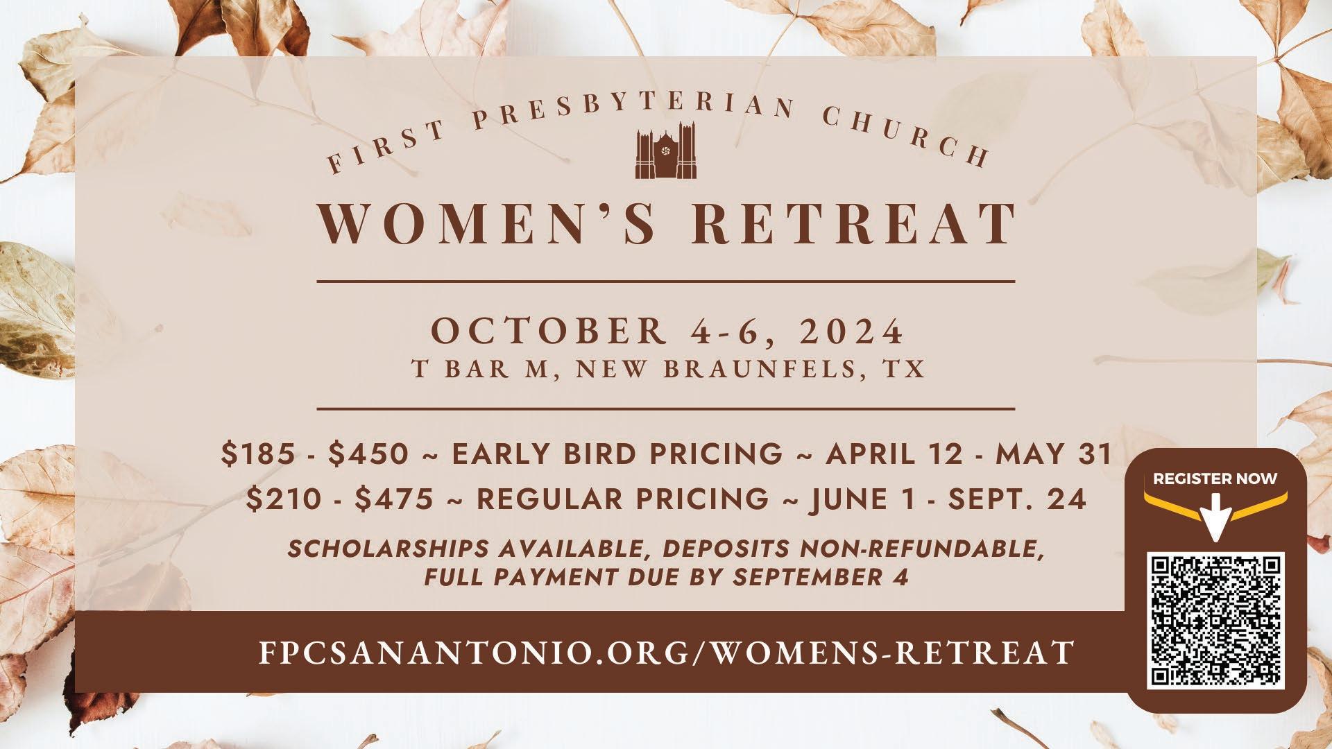 Description: Join us as we celebrate and honor the past presidents of Women of the Church with a coffee at the beautiful home of Laura Zachry. Delicious refreshments will be served, and donations will be accepted toward the First Presbyterian Church Children’s Center & AWC Centers (formerly Any Woman Can.) Valet parking will be available. Register for free at fpcsanantonio.org/women