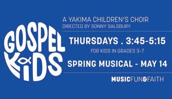 Gospel Kids are back! Rehearsals take place on Thursdays from 3:45pm – 5:15pm in the church choir room. (Park near the playground.) Sonny Salsbury welcomes kids from all over Yakima Valley, grades 3rd through 7th. (No formal training required) They are putting on an original Sonny Salsbury production Sunday, May 14 at 2pm in the Sanctuary. All are invited to attend!