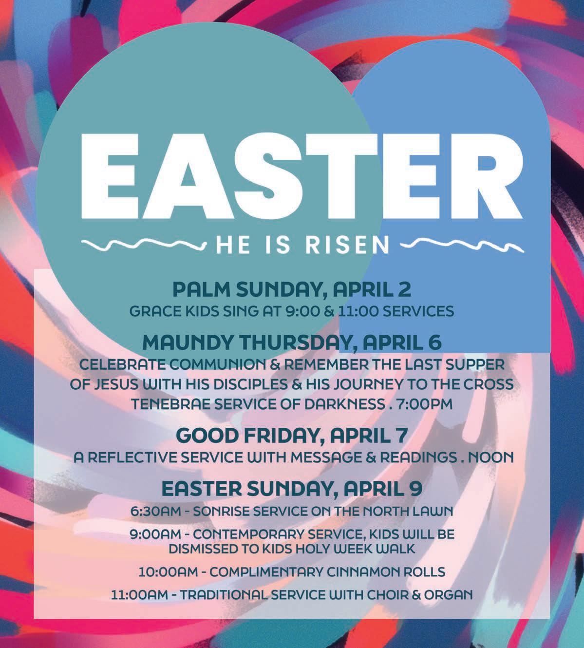 Hospitality Ministries aim is to help facilitate the Welcome of Jesus to come “Taste and see that the LORD is good; blessed is the one who takes refuge in Him.” – Psalm 34:8 This spring, think of yourself as an Ambassador of Christ to everyone you encounter on Sunday morning, extending the Welcome of Jesus to everyone, but especially to those you don’t know. Approach a stranger and tell them what Easter means to you. Offer to take a photo for them at the photo booth available on Palm Sunday and Easter. Invite them to the refreshment table, invite them to come next week or invite them to something happening at church, perhaps Wednesdays @ Grace.