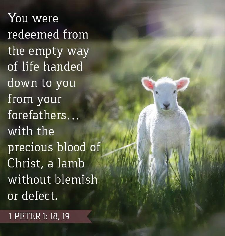 “For you know that it was not with perishable things such as silver or gold that you were redeemed from the empty way of life handed down to you from your forefathers, but with the precious blood of Christ, a lamb without blemish or defect.” – 1 Peter 1:18-19