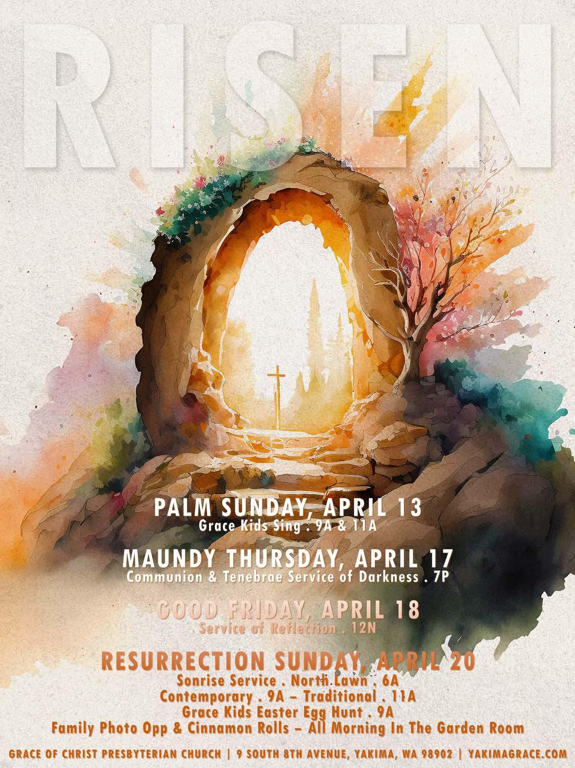 Christians spend their lives, and ultimately their eternities, discovering the beauty of Easter. It begins now. It begins here. Here at Grace – our Bible Studies, our meals together, our Sunday services, our prayers, the hours spent reading to kids at Adams Elementary, our investment in children and students, the finances we give, the forgiveness we offer, is all because of an empty tomb and a living Savior.