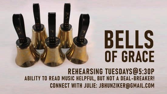 Come, check out Bells of Grace. Basic music reading ability appreciated. All ages (teens and up) welcome! If you played piano or were in the school band, this may be a perfect fit for you. Try a few sessions and see what the excitement is all about! Questions? Call Julie Hunziker (530) 209-4329