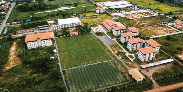 From the original team of five who operated out of an evernumerous series of rental houses, the sta in Battambang has now grown to over 140, most of whom are Cambodian citizens. Through the strong faith of the sta and their willingness to follow God’s leading, the temporary housing has grown into a 13 acre campus with an education building for 1,000, a cafeteria for 500, multipurpose building that seats 2,000, seven dorms, a half size lighted turf and full-sized grass soccer fields, the latter’s irrigation system largely installed by Grace of Christ’s own Bruce Drollinger.