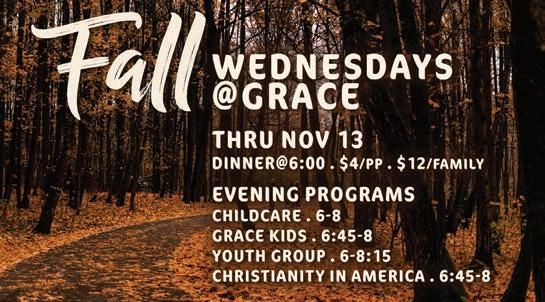 Wed, Nov 6 Jacob’s Well (at Weds@Grace) Worship for Family 6:45pm Chapel Thur, Nov 7 LOVE, INC Staff & Volunteer Thanksgiving Potluck 5:30pm Garden Room
