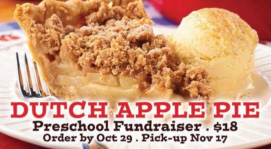 One of our Preschool’s most popular fundraisers is back again this fall. Place your order one (or more!) of their delicious, handmade Dutch apple pies. They are made with love and local apples and are ready to take home the week of Thanksgiving. Remember to order yours this month!