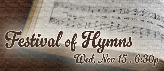 Please join us for an evening of singing! On Wed, Nov 15 at 6:30pm. We will gather together to lift our hearts in worship, including some of our most favorite and familiar hymns.