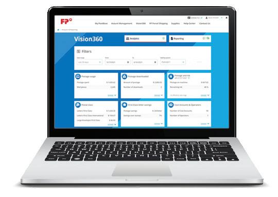 Created with exclusive technology, the PostBase® Fusion offers advanced postal analytics and reporting through Vision360. Accessible through the MyFP Customer Portal, Vision360 provides companies a 360-degree view of postal usage to better monitor, manage, and control postal expenditures.