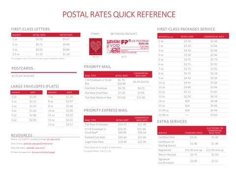 Notice 123 (USPS® complete pricing): pe.usps.com/ Zone Charts: postcalc.usps.gov/Zonecharts/ Rate Calculator: postcalc.usps.com/ FP Rate Increase Info: fp-usa.com/ratechange/