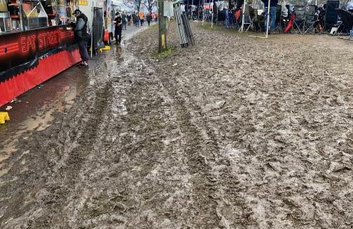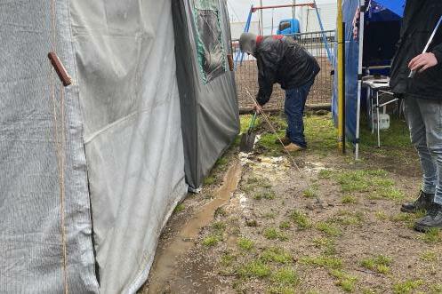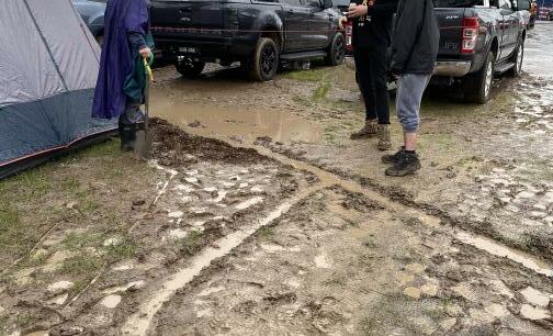 All the campers dug trenches to divert the water, some even ordered tanbark to be delivered so their sites were more manageable and some just up and left as the ground was to muddy.