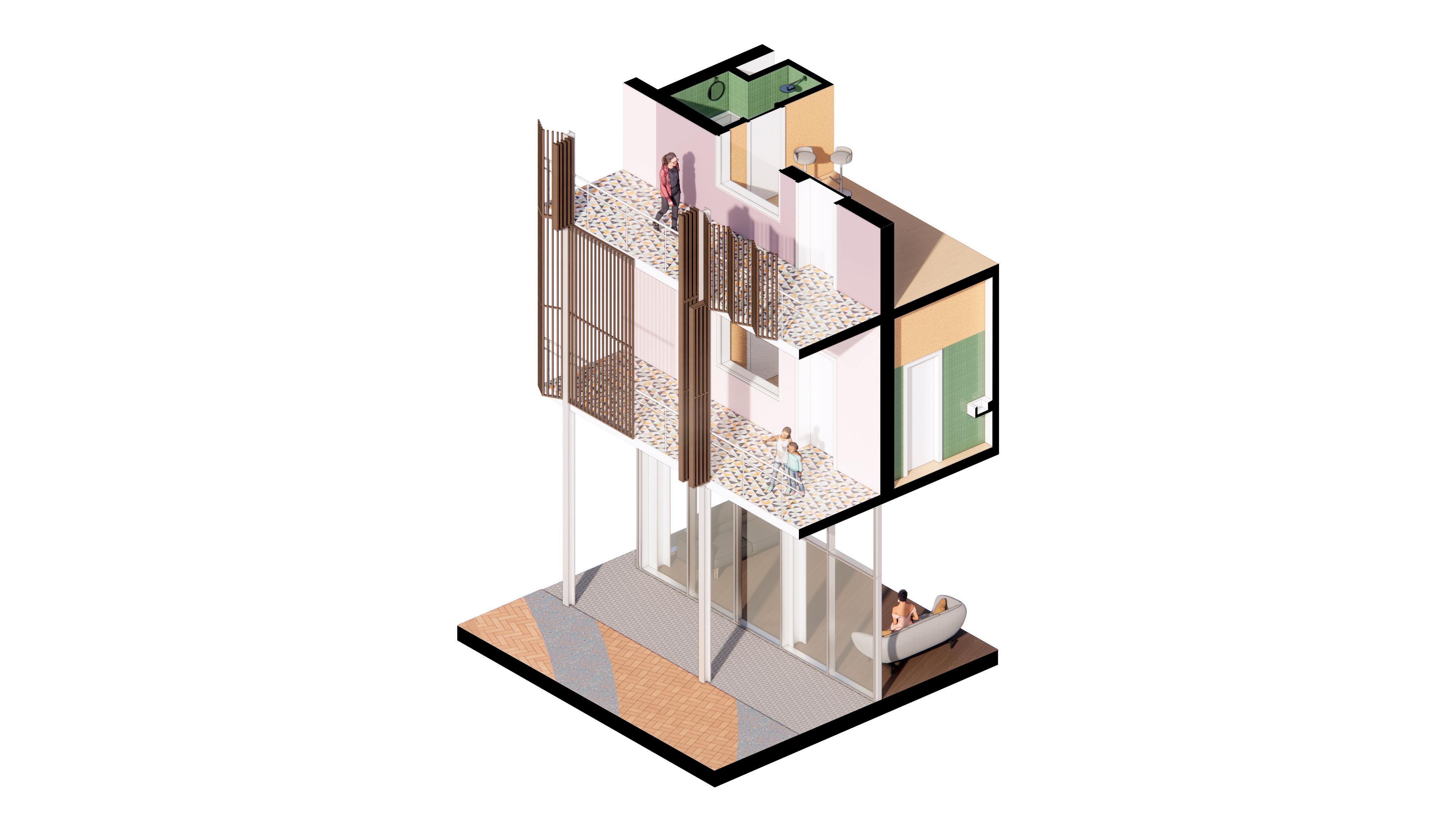 1 2 3 4 5 S02 - GROUNDFLOOR SLAB (50cm) U = 0,22 W/m2K 01. Pavement 02. Serpentine heating 03. Soundproof barrier 04. Rockwool insulation 05. Predalles type floor 06. Light brick