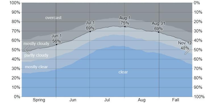 Humidity and overcast days 20 30 40 50 60 70 80 90 100 0