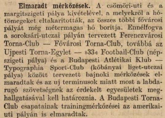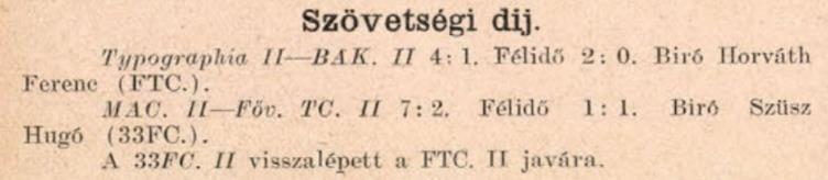 Egyébiránt valószínűleg az történt, hogy a pálya jó volt egy mérkőzésre, az azonban annyira tönkretette, hogy az következett be, ami. Az az egy mérkőzés, amit szabályosan le lehetett játszani, az a második számú csapatok mérkőzése volt a Szövetségi díjért, amit az FTC II nyert meg.