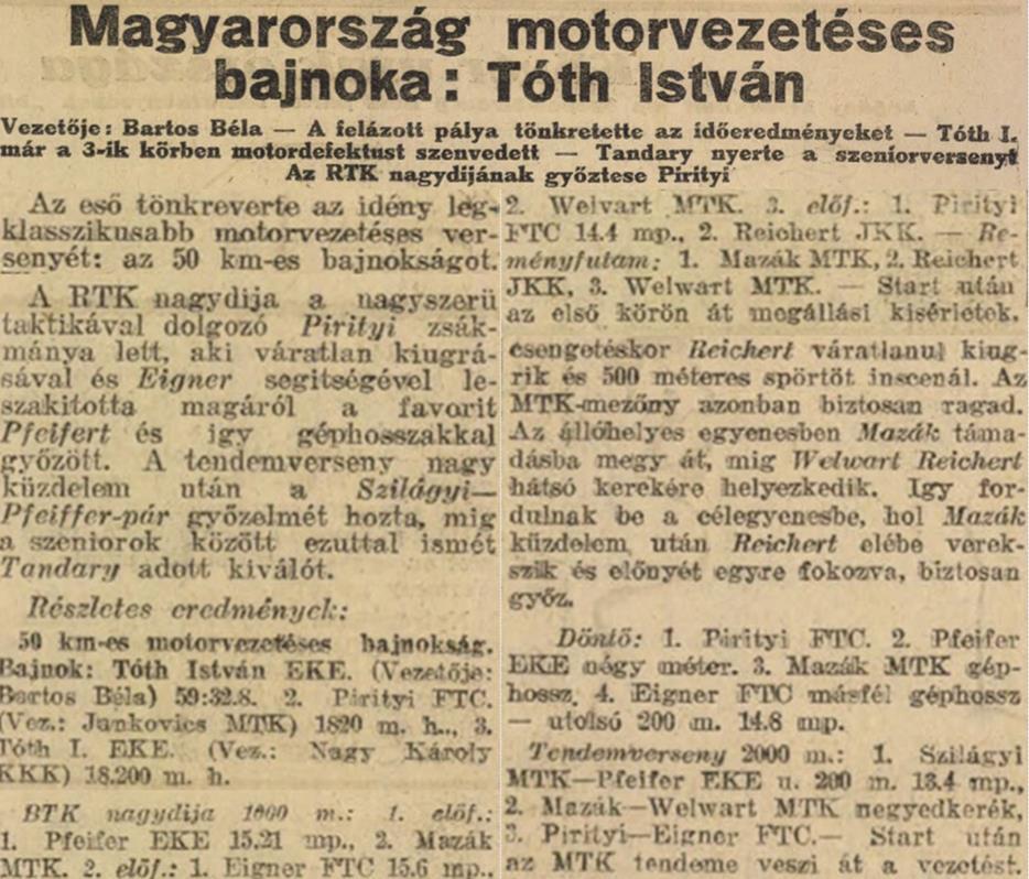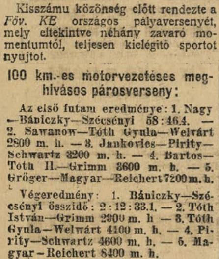 Bár még nem volt önálló szakosztály, ám Tóth Kálmán már elindult és nyert egy motorkerékpáros versenyen, amelyet egy kerékpárverseny betétszámaként rendeztek meg.