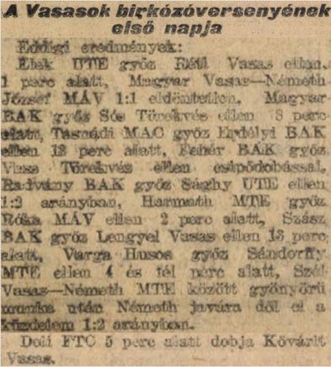 Megkezdődött a Vasas birkózóversenye, ahol az első napon az FTC részéről Deli József volt érdekelt, aki győzelemmel mutatkozott be.