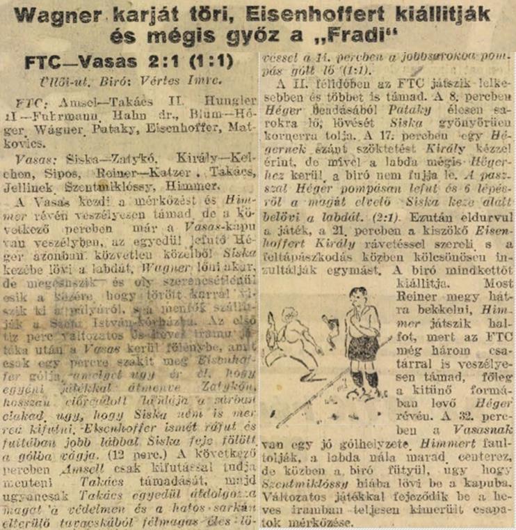 Eisenhoffer József bűne megbocsáttatott. Az előző évi FTC-MTK meccs után Eisenhoffer megsértette Szigeti Imrét, aki ezért – hiába kért írásban is bocsánatot - gyakorlatilag kiebrudalta a csapatból. Nem telt el sok idő, máshol elhelyezkedni nem tudott, így újabb bűnbocsánatért esedezett az FTC vezetésénél, amit ezúttal meg is kapott, így a tavasz folyamán újra magára húzhatta a zöld-fehér mezt.