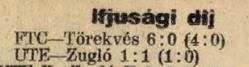 A Csáky vándordíjért további három mérkőzést játszott az FTC csapata, amelyekből egyet megnyert, kettőt elveszített, így a tornán a harmadik helyen végzett.