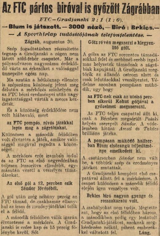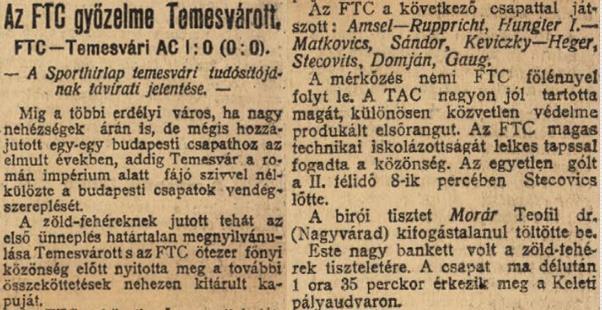 Egy ilyen újságcímet ma is elfogadnánk: Az FTC legyőzte a török válogatottat. 1924-ben ez is megtörtént.