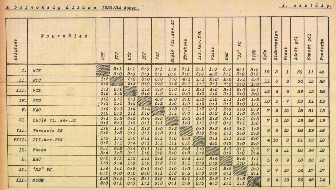 Az 1923/24. évi bajnokságban az FTC a második helyen végzett.