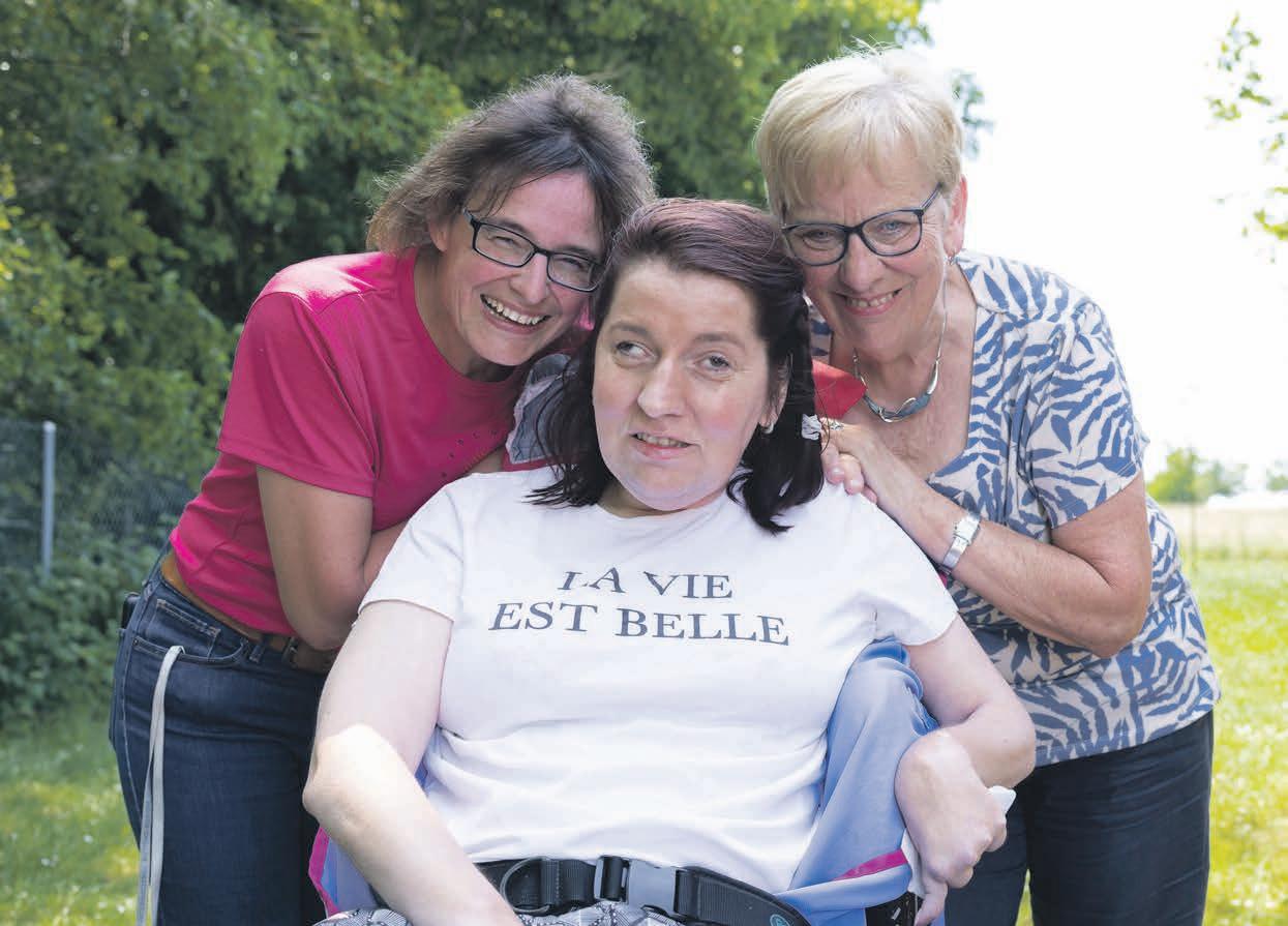 la croit. Pourtant, elle a raison : Floriane est bien consciente. Avec le soutien de Laure Nusbaumer, Floriane écrit le récit de son vécu : « Pour le médecin de l’hôpital, je suis un légume ! Pour eux tous, je suis encore dans le coma et je suis à la fin. Ce n’est pas vrai ! Je suis une femme intelligente et je ne suis pas fatiguée de la vie, je vais me battre pour ma famille qui est unie et que j’aime. Heureusement, ma mère est là et elle fait des efforts pour moi. » Cette période était très dure à vivre pour Marie-Andrée Willemin. Elle a trouvé du réconfort dans la lecture des témoignages de personnes concernées dans le journal de FRAGILE Suisse. « J’aurais aimé participer à un groupe de parole, ça m’aurait fait du bien, mais c’était une période où j’avais très peu de temps à disposition », dit-elle pudiquement.
